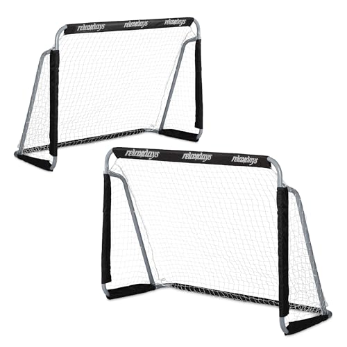 Relaxdays Fotbollsmål i trädgård, set om 2, barn och vuxna, HBT: 110 x 150 x 75 cm, metall, stabila grindfotboll, svart