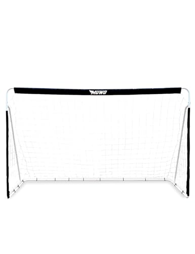 MUWO Fotbollsmål av stål med textilrock 240 x 150 cm, väderbeständig och utomhus, lämplig för gård och trädgård, för träning och vänskapsspel (svart/vit)