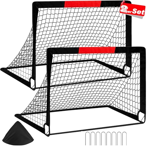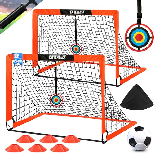 CATCHLUCK Fotbollsmål för Trädgård Barn Pop Up 2st Set Med Fotboll, 6 Fotbollskon, 8 U-Formade Markspikar Och Bärväska (Röd)