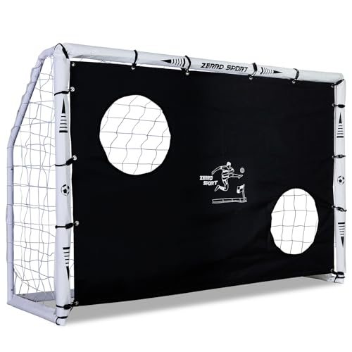 ZERRO Fotbollsmål med målvägg 180 cm fotbollsmål, för vuxna barn att leka med i trädgården, 180 x 60 x 120 cm, vit