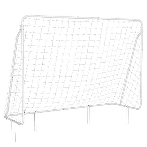 Songmics Fotbollsmål för barn, fotbollsnät, snabb montering, för trädgård, gård, park, strand, järnrör, nät av PE, 215 x 76 x 150 cm, vit SZQ215W01