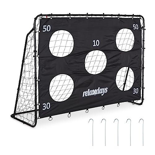 Relaxdays Fotbollsmål med målvägg, trädgård, barn och vuxna, Soccertor, HBT 153 x 217 x 75 cm, stål, portfotboll, svart