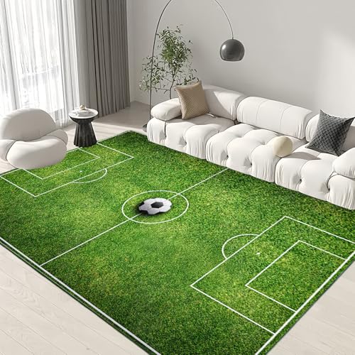 TYKTZXY Fotbollsmatta fotboll, fun heminredning lekmatta för ungdomsrum pojkar flickor sporttema rum grön 120 × 160 cm