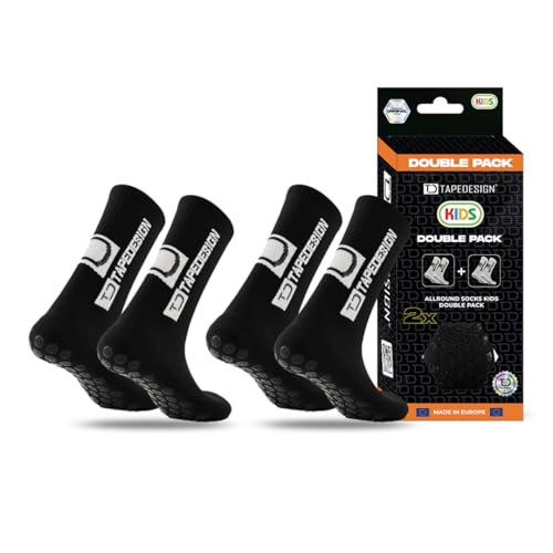 Tapedesign – dubbelpack allroundstrumpor barn – 2 par halkfria fotbollsstrumpor för barn – perfekt grepp och komfort – halkfria sportstrumpor för träning och lek
