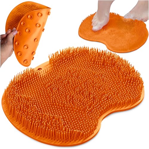 Fot- och ryggskrubber för duschen – silikonfotmassagematta med sugkoppar – massagematta och fotskrubber – halkfri duschmatta – fotborste och bakskrubborste