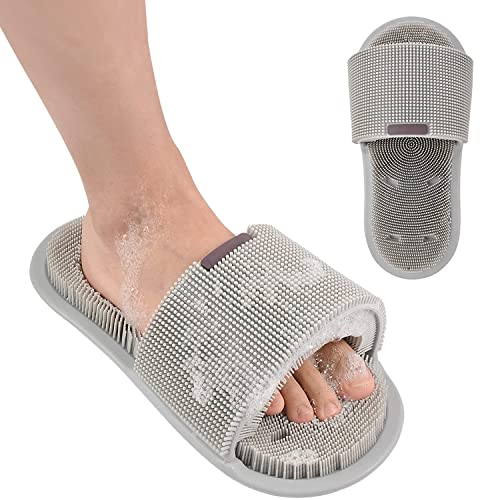 Petalum Fottvätt dusch silikon massage sandal med halkfria sugkoppar djuprengöring fotborste dusch massageapparat för dusch förhårdnad peeling fotmassage (grå 2 st, en storlek)