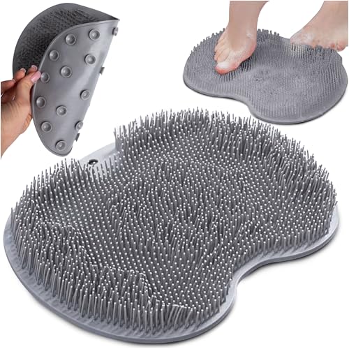 Capgoost Fotborste för duschen, halkfri silikon massagedyna, fotborste fottvättare, tvättare massageapparat dusch med halkfri sugkopp, duschfotrengöring peeling, masserar ryggen (grå)