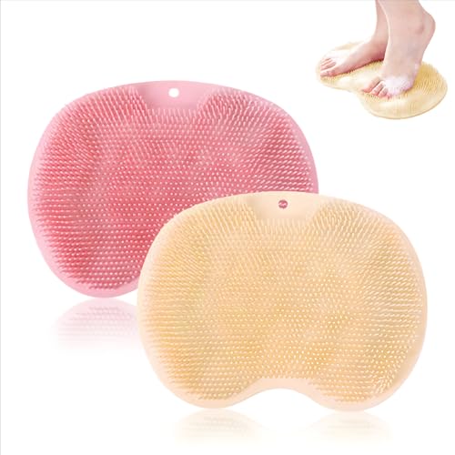 SoeUyd 2 stycken badmassagedyna, fotborste för duschen, halkfri silikonmassagedyna, skrubbermassageapparat för rengöring, peeling, fotcirkulation, lindrar fottrötthet utan att böja sig ner
