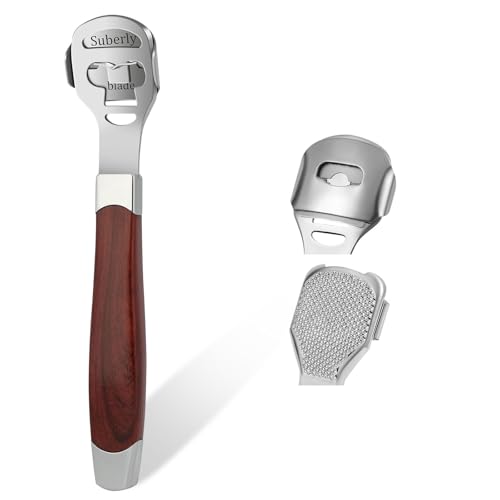 URAQT Hyvel för förhårdnader, rostfritt stål, fotskrapa, rakapparat, fotfil raspfilar, död hudborttagare med 10 ersättningsblad för fotvård, pedikyr (träådring)