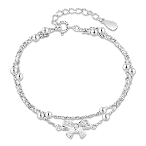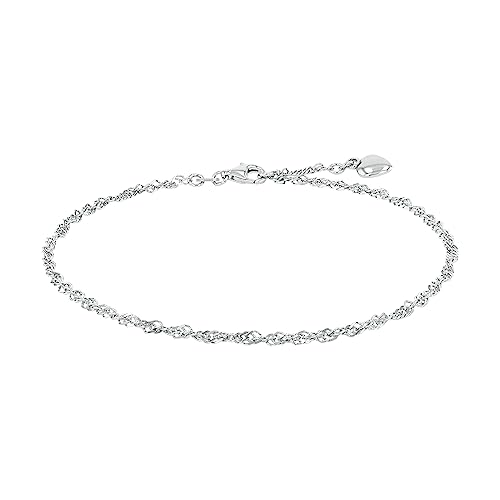 Finrezio vristlänk för kvinnor silver 925 lager fotlänk silver justerbara hjärta pärlor vristlänk för flickor sommar strand smycken gåva (inklusive presentlåda), 21.5 cm + 5 cm