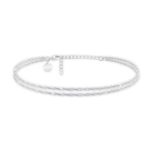 Fotlänkar för kvinnor silver | Flerlagers fotlänk i 316L rostfritt stål med vitguld – Vattentålig & Justerbar (22–27 cm)