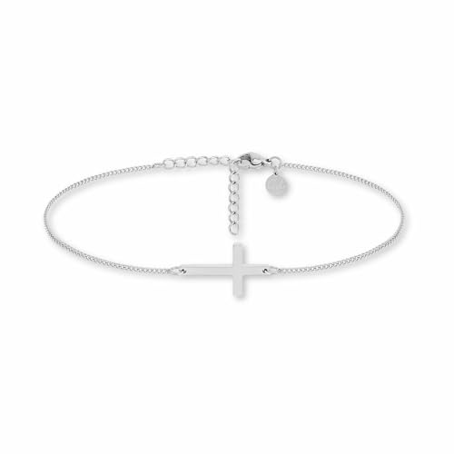 Silverfärgad fotlänk för kvinnor med korshänge – Fotlänk i 316L rostfritt stål i silver | Vattentålig & Justerbar (22–27 cm)