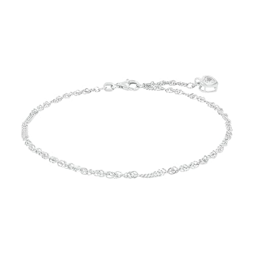 Amor fotlänk 925 sterling silver dam sommarsmycken, med cubic zirconia synth, 25 cm, silver, hjärta, Kommer i smycken presentförpackning, 2017448