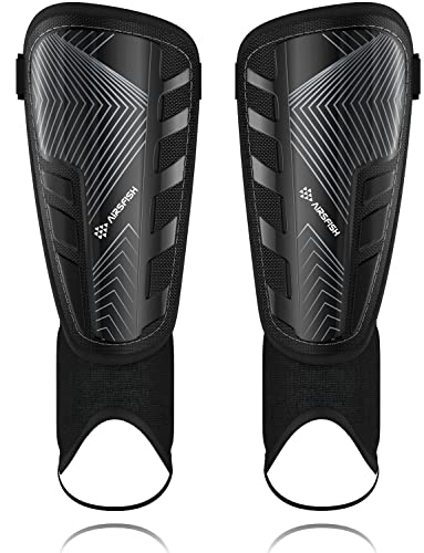 Airsfish skenbensskydd för barn fotboll – certifierad med fotledsskydd, justerbara remmar – fotbollsutrustning för pojkar och flickor, hög hållfasthet