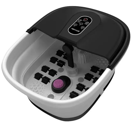 Nevvue massageapparat för fotbad, vikbar fotmassageapparat, fotbad med värmefunktion, fotbad med fjärrkontroll, fotbubbelbad med timer, fotbadkar med 16 shiatsu-rullar, fotbadkar med slipsten