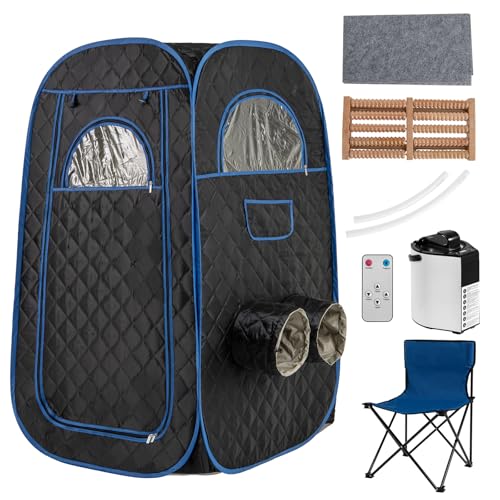 Costway Bärbar ångbastu, hemmabastu för 1–2 personer med 3-liters ånggenerator, timer, fjärrkontroll, fotmassageapparat och klappstol, bastutält, sittbastu för hemmabruk, 89 x 89 x 149 cm (svart)