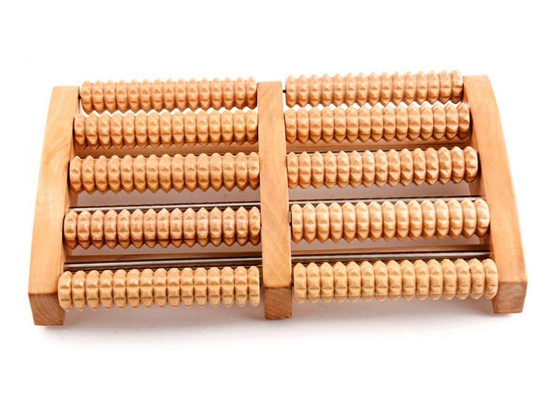 TheraFlow Fotmassagerulle – plantar fasciit och stresslindring, reflexologimasserare för diabetisk neuropati – lindrar smärta genom akupressur, avslappningspresent för kvinnor – dubbel, trä