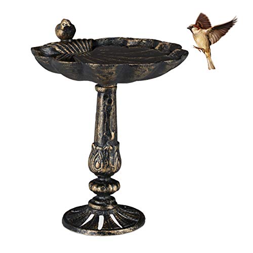 Relaxdays Gjutjärn fågelskål, antik design, fotmatare, vattenfontän vilda fåglar, bronsfärg