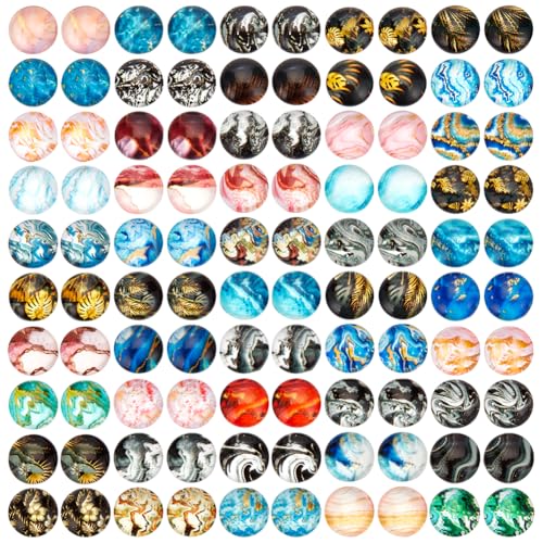PH PandaHall 100 st 50 stilar marmortryckta glas cabochoner, 10 mm blad våg glas cabochoner halvrund kupol cabochon för foto-hänge Cameo örhänge halsband armband smyckestillverkning