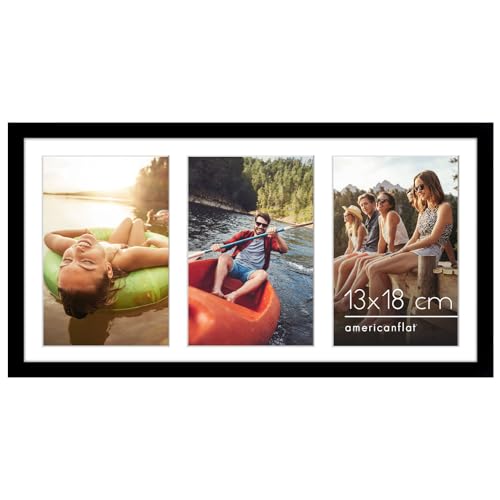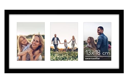 Americanflat 25x51 cm Collage Fotoram med Splittersäkert Glas - Passar Tre 13x18 cm Foton eller Ett 25x51 cm Foto - Signature Collection - Galleria Ramset för Bord och Väggdisplay - Svart