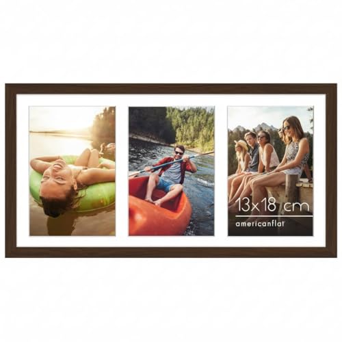 Americanflat 20x41 cm Collage Fotoram med Splittersäkert Glas - Passar Tre 13x18 cm Foton eller Ett 20x41 cm Foto - Signature Collection - Galleria Ramset för Bord och Väggdisplay - Valnöt