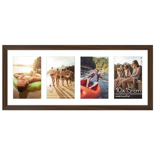 Americanflat 20x51 cm Collage Fotoram med Splittersäkert Glas - Passar Tre 10x15 cm Foton eller Ett 20x51 cm Foto - Signature Collection - Galleria Ramset för Bord och Väggdisplay - Valnöt
