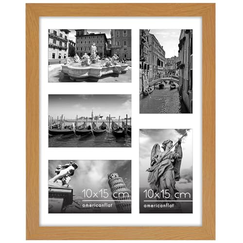 Americanflat 28x36 cm Collage Fotoram med Splittersäkert Glas - Passar Tre 10x15 cm Foton eller Ett 28x36 cm Foto - Signature Collection - Galleria Ramset för Bord och Väggdisplay - Ljust Trä