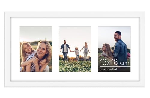 Americanflat 25x51 cm Collage Fotoram med Splittersäkert Glas - Passar Tre 13x18 cm Foton eller Ett 25x51 cm Foto - Signature Collection - Galleria Ramset för Bord och Väggdisplay - Vit