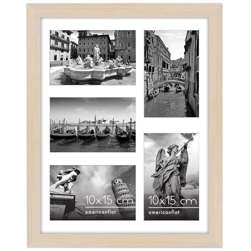 Americanflat 20x41 cm Collage Fotoram med Splittersäkert Glas - Passar Tre 13x18 cm Foton eller Ett 20x41 cm Foto - Signature Collection - Galleria Ramset för Bord och Väggdisplay - Ljust Trä