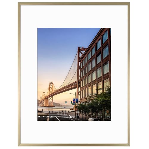 Frametory, 11 x 14 aluminiumbildram – 11 x 14 guldram med elfenbensfärgad matta för 8 x 10 foto – 14 x 11 metallfotoram och äkta glas – sågtandshängare ingår för väggvisning – 1-pack