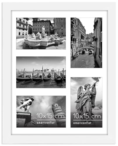 Americanflat 20x51 cm Collage Fotoram med Splittersäkert Glas - Passar Tre 10x15 cm Foton eller Ett 20x51 cm Foto - Signature Collection - Galleria Ramset för Bord och Väggdisplay - Vit