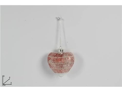 TVÅ ESSE CHRISTMAS SRL L.Glas Glitter Röd Hjärta 8cm 010595$$, Som Foto, En storlek