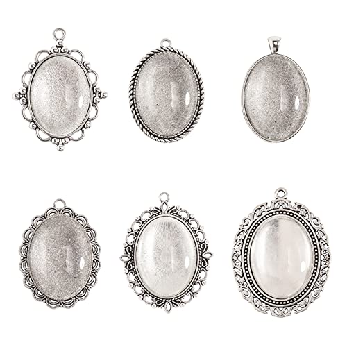 PandaHall ovala hängbrickor – 6 st 6 former tibetanska hängbrickor infattningsbrickor och 6 st 40 x 30 mm glas cabochoner klar kupol för foto smyckestillverkning