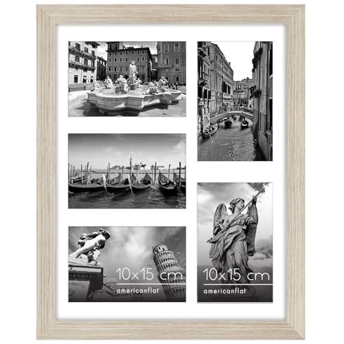 Americanflat 20x61 cm Collage Fotoram med Splittersäkert Glas - Passar Tre 10x15 cm Foton eller Ett 20x61 cm Foto - Signature Collection - Galleria Ramset för Bord och Väggdisplay - Drivved