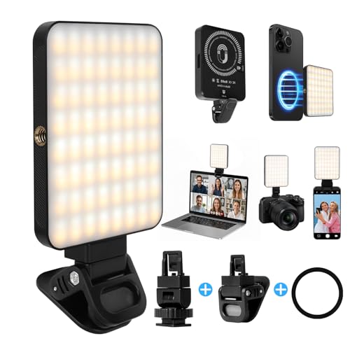 AiQInu Selfie-ljus för telefon, foto- och videolampa med 128 lysdioder, CRI>95%, 10 ljusstyrkenivåer, 3 färglägen, USB-C-laddning, bärbar, magnetisk för smartphone/surfplatta/stativ