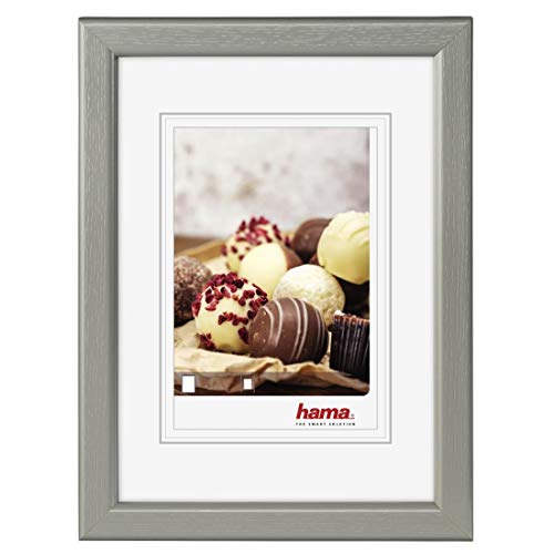Hama Fotoram i plast "Bella Mia" (ram 10 cm x 15 cm, kant 15 mm x 15 mm, för foto storlek 7 cm x 10 cm, SLR-glas, plast/trä (WPC), med krok/fot), stengrå