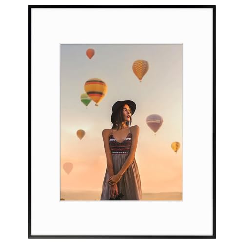 Frametory, 16 x 20 aluminiumbildram – 16 x 20 svart ram med elfenbensfärgad matta för foto 11 x 14 – 20 x 16 metallfotoram och äkta glas – sågtandshängare ingår för väggvisning – 1-pack