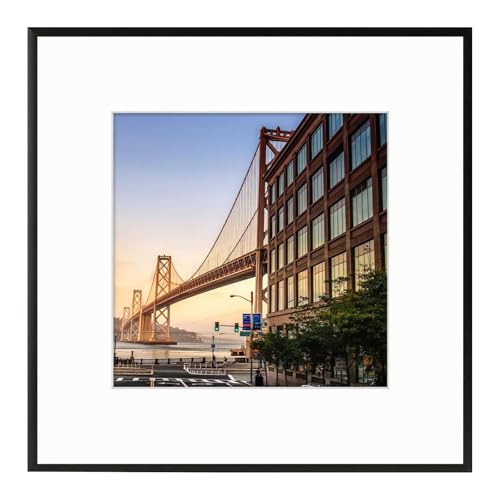 Frametory, 12 x 12 aluminiumbildram – 12 x 12 svart ram med elfenbensfärgad matta för 8 x 8 foto – 12 x 12 metallfotoram och äkta glas – sågtandshängare ingår för väggvisning – 1-pack
