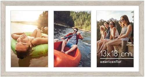Americanflat 20x41 cm Collage Fotoram med Splitterbeständigt Glas - Passar Tre 13x18 cm Fotografi eller Ett 20x41 cm Foto - Signature Collection - Galleria Ram Set för Väggupphängning - Drivved