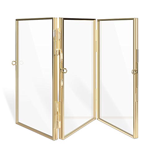 OLYCRAFT 2 st dubbla fotoramar i glas med gyllene kedja vintage vikbar ram illustration visningsramar för pressade blommor foto hem väggdekoration 6 x 6 cm vintage stil