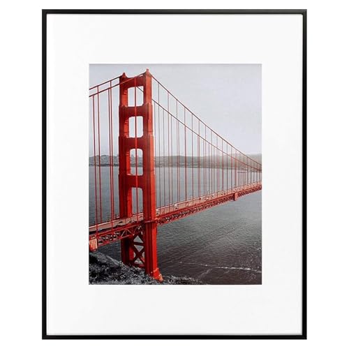 Frametory, 11 x 14 aluminiumbildram – 11 x 14 svart ram med elfenbensfärgad matta för 8 x 10 foto – 14 x 11 metallfotoram och äkta glas – sågtandshängare ingår för väggvisning – 1-pack