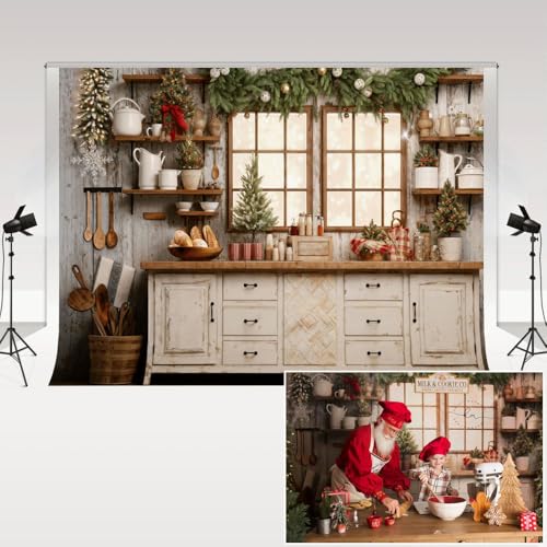 Kate Fotobakgrund 2,2 x 1,5 m/7 x 5 fot vinter jul kök fönster julgran skåp barn familj porträtt dekor bakgrund foto studio