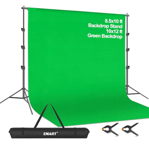 EMART Grön skärmbakgrund med stativ, 2,6 x 3 m (8,5 x 10 fot) fotografi bakgrundsstativsats med 3 x 3,6 m (10 x 12 fot) muslin Chroma bakgrund för porträtt, video, fotografering, foto, studio
