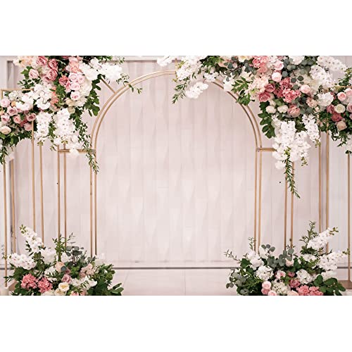 MIRRORANG 3 x 2,5 m bröllopsbakgrund rosa och vita blommor gyllene båge fotografi bakgrund inomhus brud förlovningsceremoni dekorationer banderoll porträtt foto studio skytte rekvisita