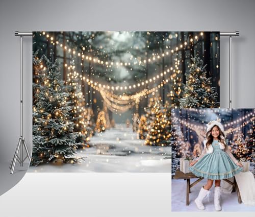 Kate 2,2 x 1,5 m vinterskog snö jul fotografi bakgrund julgran belysning bokeh bakgrund barn familj porträtt foto studio rekvisita