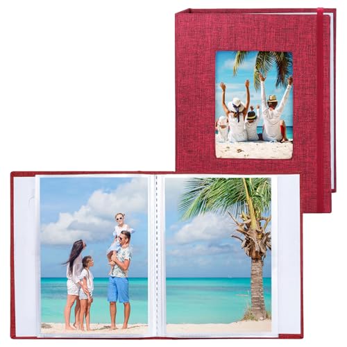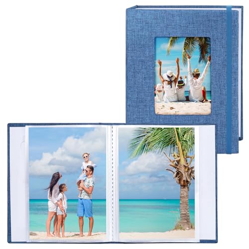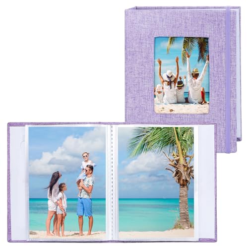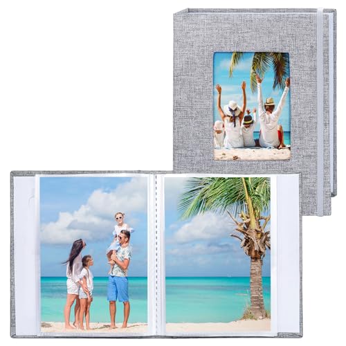 Vienrose Fotoalbum Små 10x15 Foton 2 Pack Linneöverdrag med frontfönster, Slip-in Album 26 sidor med 52 foton, lagra konstverk eller vykort