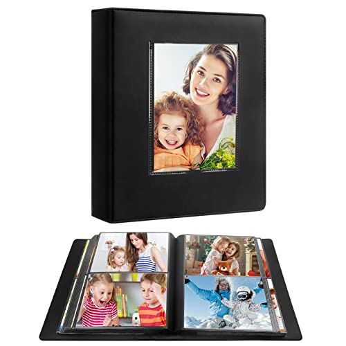 Fotoalbum 4 x 6 450 foton med skrivutrymme, 4 x 6 fotoalbum linneskydd med främre fönster, 4 x 6 bildalbum, 450 foton 4 x 6 fotoalbum bok för bröllop barn resor familj babybilder (svart)