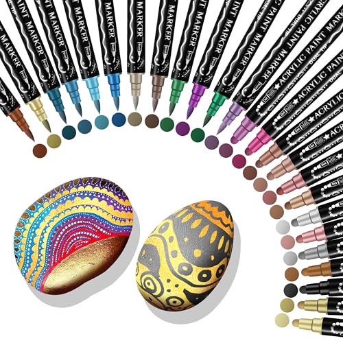 Metallic Markers pennor, 24 färger akrylpennor för stenar vattentäta, metalliska pennor för fotoalbum, gästbok bröllop, klippbok tillbehör, svart papper, porslin, glas, duk, keramik, trä, ägg