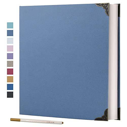 Vienrose Fotoalbum, självhäftande, klippbok, album gör-det-själv, scrapbook med en metallisk penna (33 x 32 cm, 60 sidor, himmelsblå)