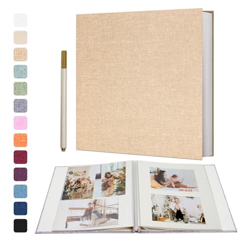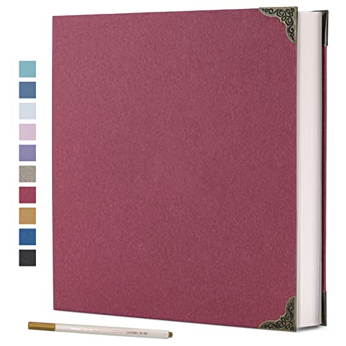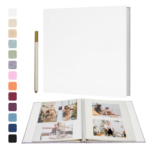 Vienrose Självhäftande fotoalbum 10x15 Limma in och anpassa stort linnefotoalbum med 40 vita sidor, bröllopsjubileum födelsedagspresenter med en penna, 33x32cm